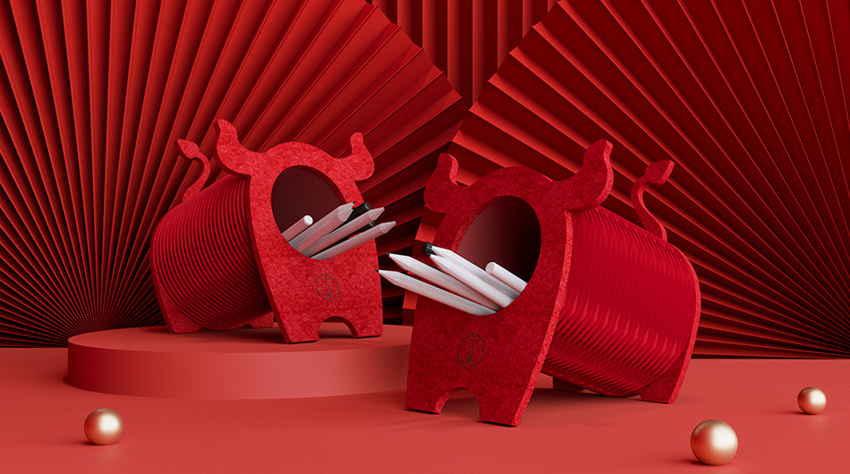 Bull-Inspired Collapsible Pen Holder – Angled Kraft Paper Desk Organizer (Red or White)