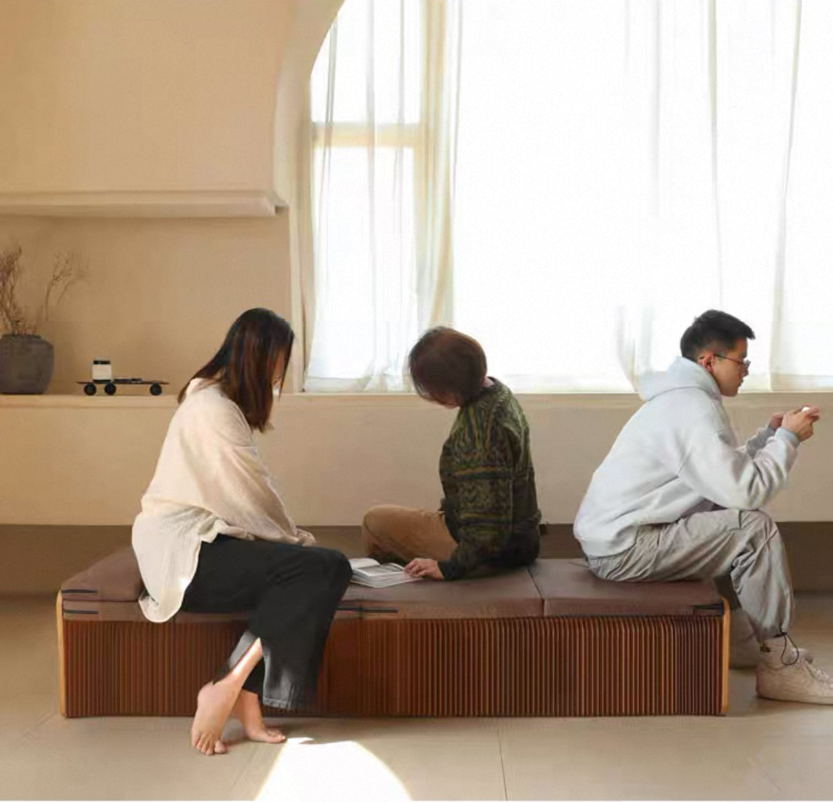 Intelligent, minimalist concept - has many ergonomics advantages over a more conventional sofa-bed, especially in terms of weight, ease of operation, and minimising bulk.